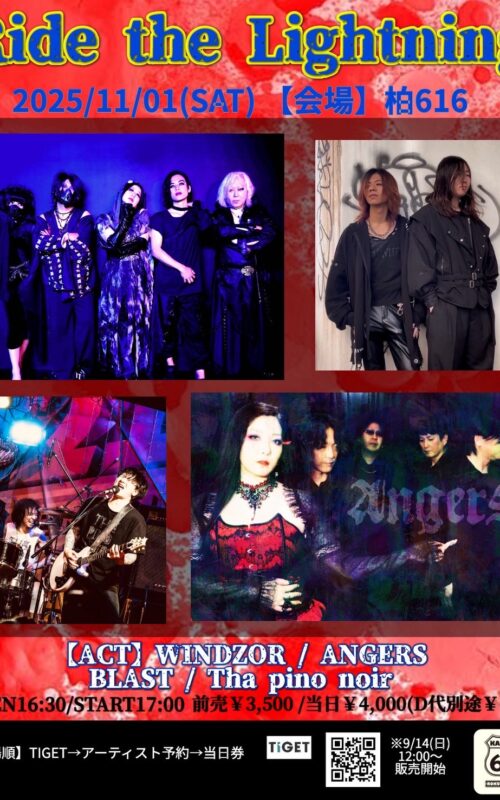 開催日:2025年11月1日(土) 会場:柏616 <出演> BLAST / The pino noir / ANGERS / WINDZOR 前売 3,500円+1Drink 当日 4,000円+1Drin […]